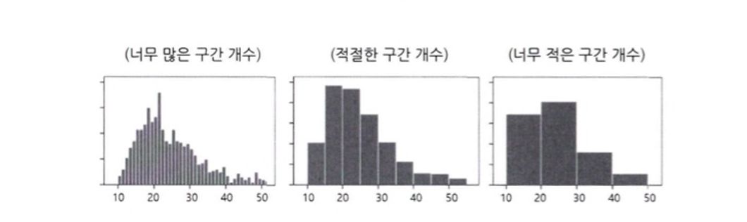 양적 척도의 경우 막대/선그래프, 혹은 히스토그램으로 나타낼 수 있다. 히스토그램은 구간을 쪼게 동일한 면적의 막대그래프를 이어 그린 그래프이며 처음에는 많은 구간으로 나누고 시각적인 정보의 손실이 커지기 전까지 구간의 개수를 줄여나가면서 그린다.