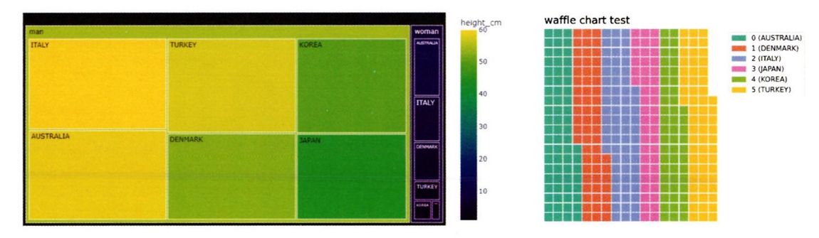 질적 척도에서 구성 요소가 복잡한 경우에는 트리맵 차트 혹은 와플 차트를 이용한다.
