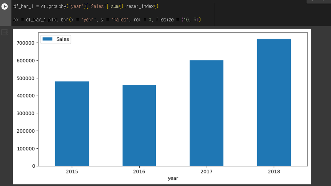 시간의 밀도가 낮을 때 막대그래프, 누적 막대그래프가 주로 사용되며 값들의 상대적 차이를 나타낼 때 유용하다.