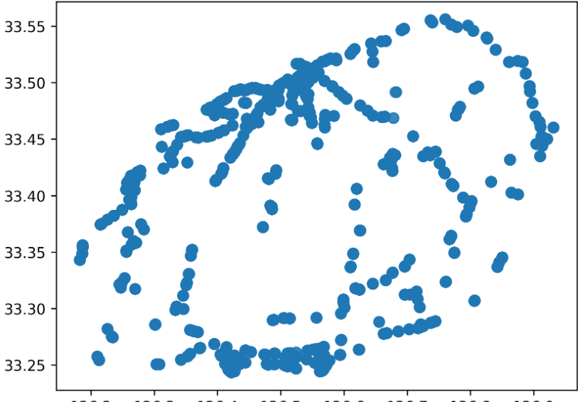for lat, lon in zip(df['start_latitude'][:100], df['start_longitude'][:100]):