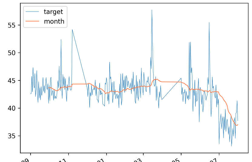 df1['month'] = df1['target'].rolling(window = 30).mean()