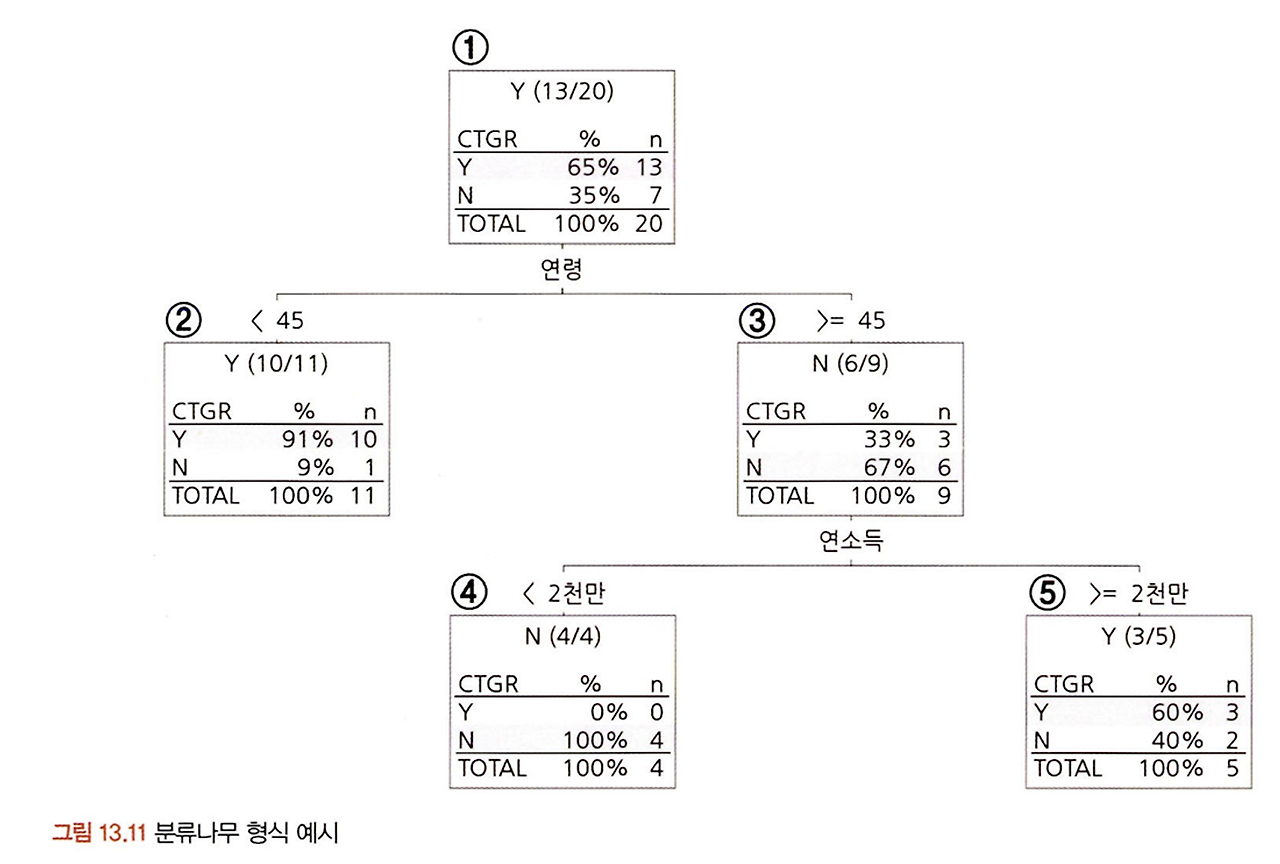 명목형의 종속변수를 분류할 수 있는 분류나무와 연속형의 수를 예측할 수 있는 회귀나무가 있다. 두 모델 모두 양적 척도와 질적 척도의 독립변수를 다 사용할 수 있다.