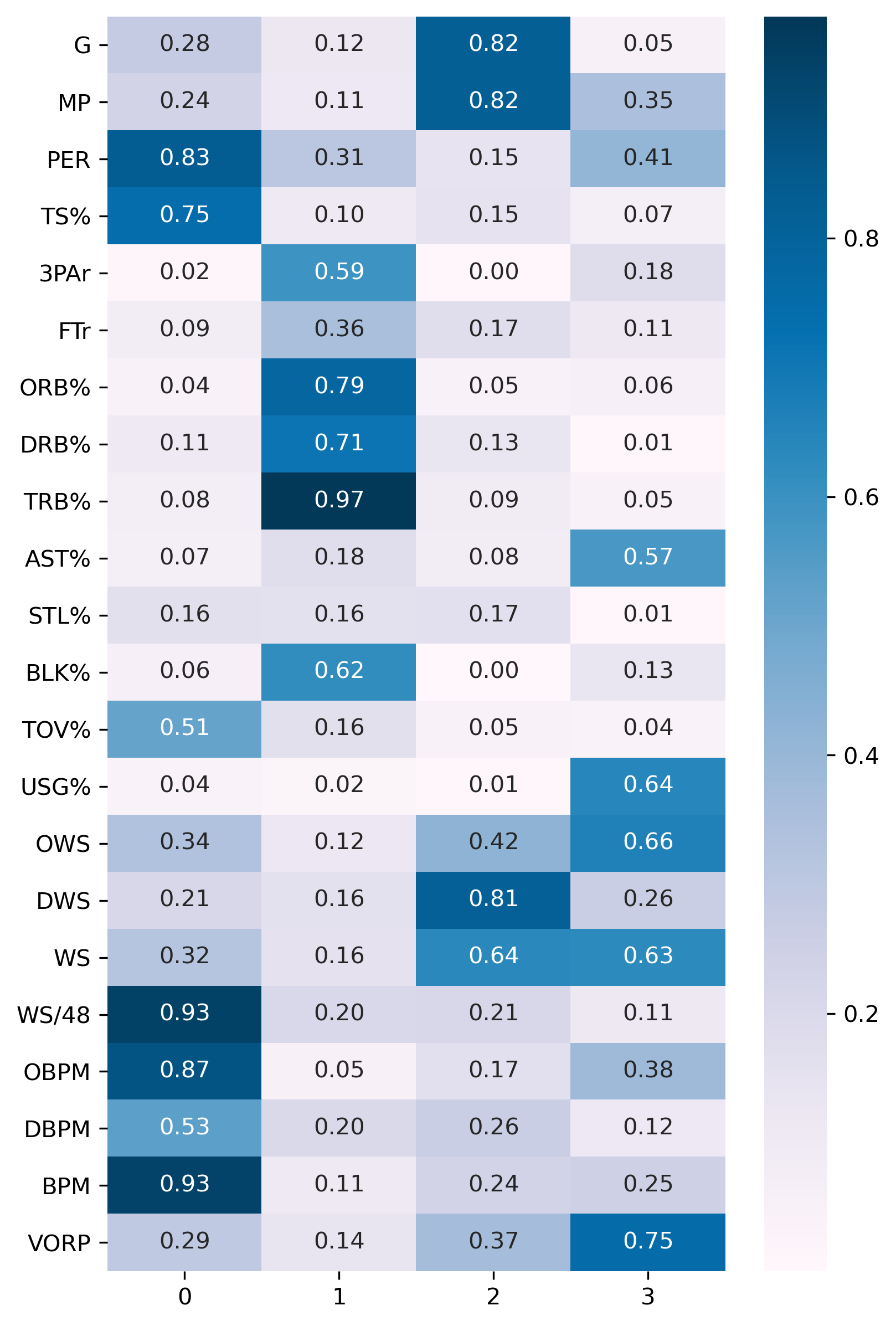 단순한 테이블 형태는 요인별로 주요 변수를 확인하기 어렵기 때문에 시각화를 한다.