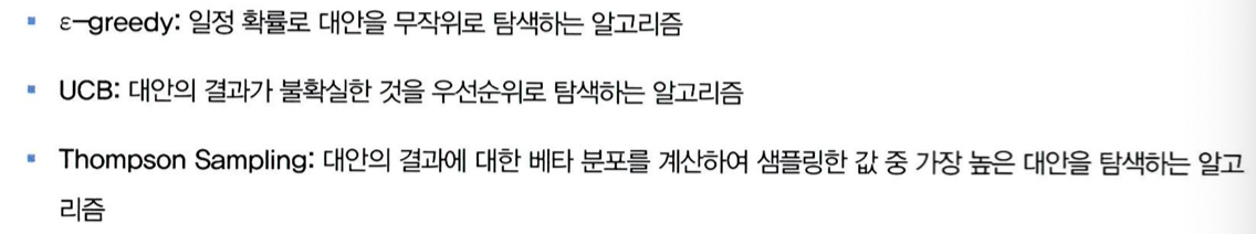 MAB를 적용하면 사용자의 실제 반응 정보를 반영하여 실제 반응률이 가장 좋은 모델을 적용한 아이템 추천을 하여 반응률을 극대화