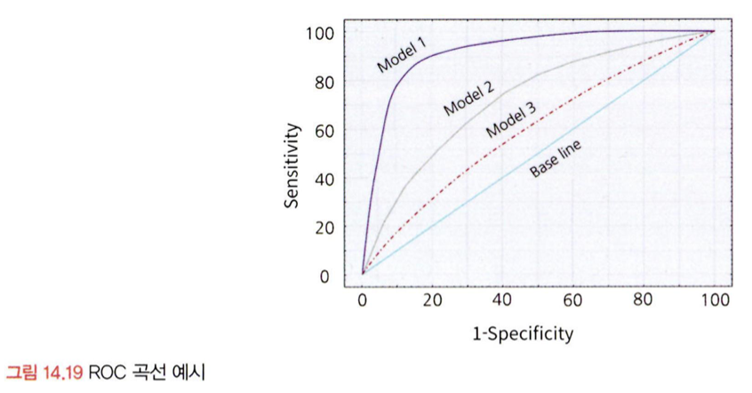 민감도와 1-특이도 값의 변화를 그래프로 그려 분류 모델의 성능 평가